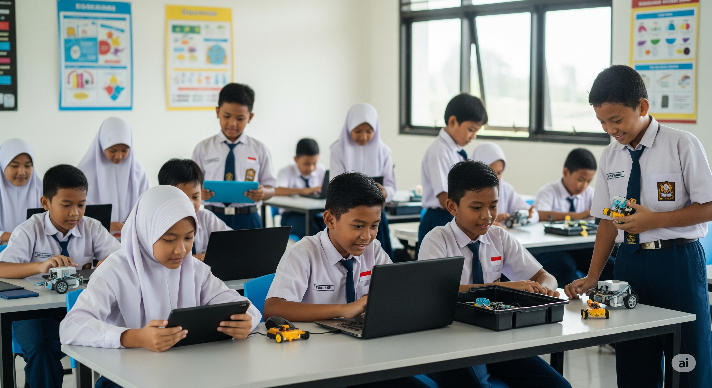 Belajar berbasis tablet dan LMS modern untuk pembelajaran interaktif.